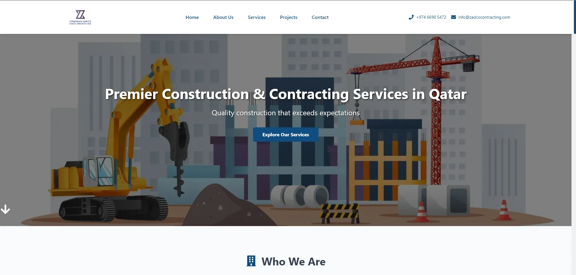 Corporate website for a Qatar-based construction company, built with React and Tailwind CSS, optimised for Core Web Vitals, and deployed to a VPS with nginx.